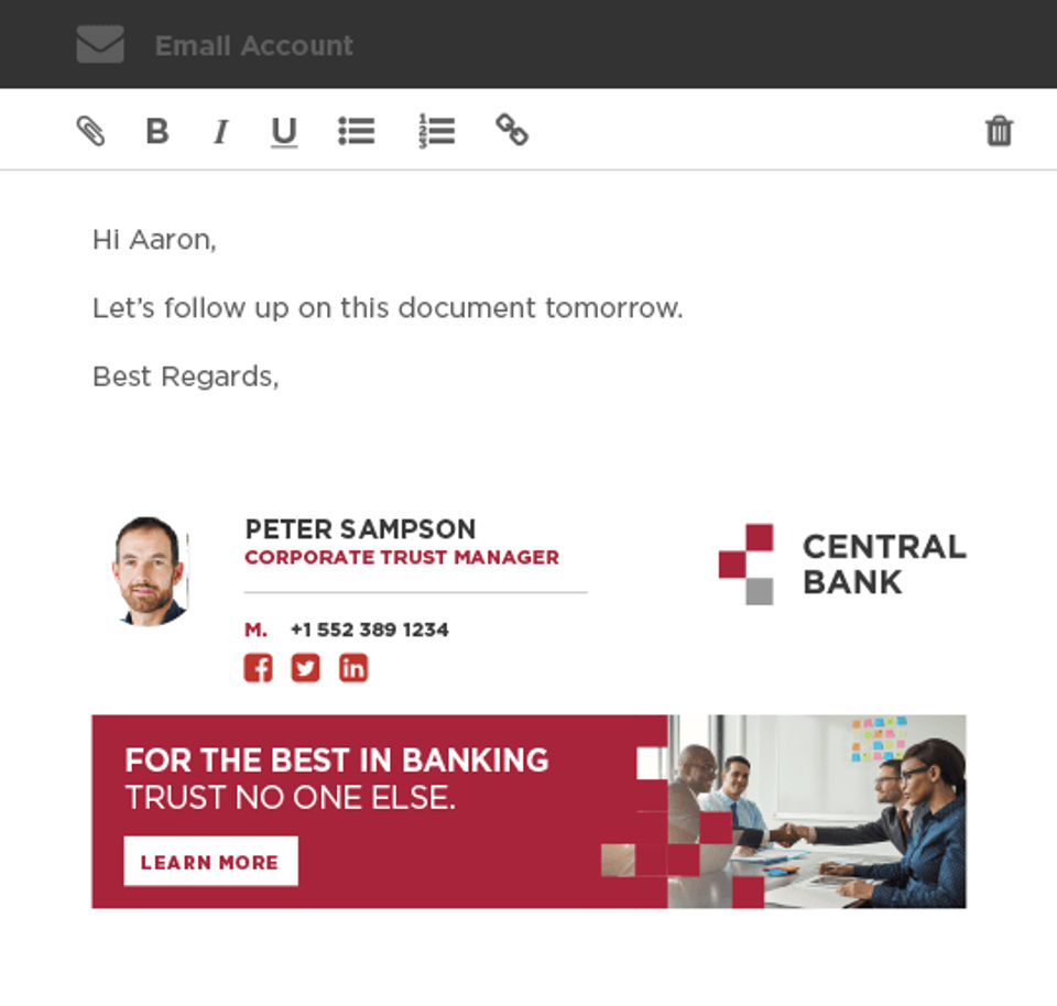 We are solving the problem of misalignment of brand in our email signatures. We are adding another channel to our campaigns without any effort from the front end teams