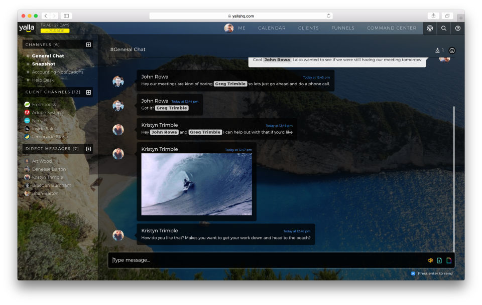 Yalla gives me all the support in features and customer service I need to increase productivity in my company. The interface has a lot of attractive color themes to choose from that make this tool more elegant and dynamic, the Yalla chat is also great to communicate with my colleagues, share images and files in real time