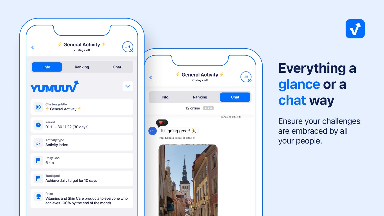 YuMuuv enhances team dynamics by offering advanced tools for creating, editing, and managing teams within the wellness challenges. The platform's integrated chat feature allows participants to share updates, photos, and encouragement, fostering a sense of community and mutual support among employees.
