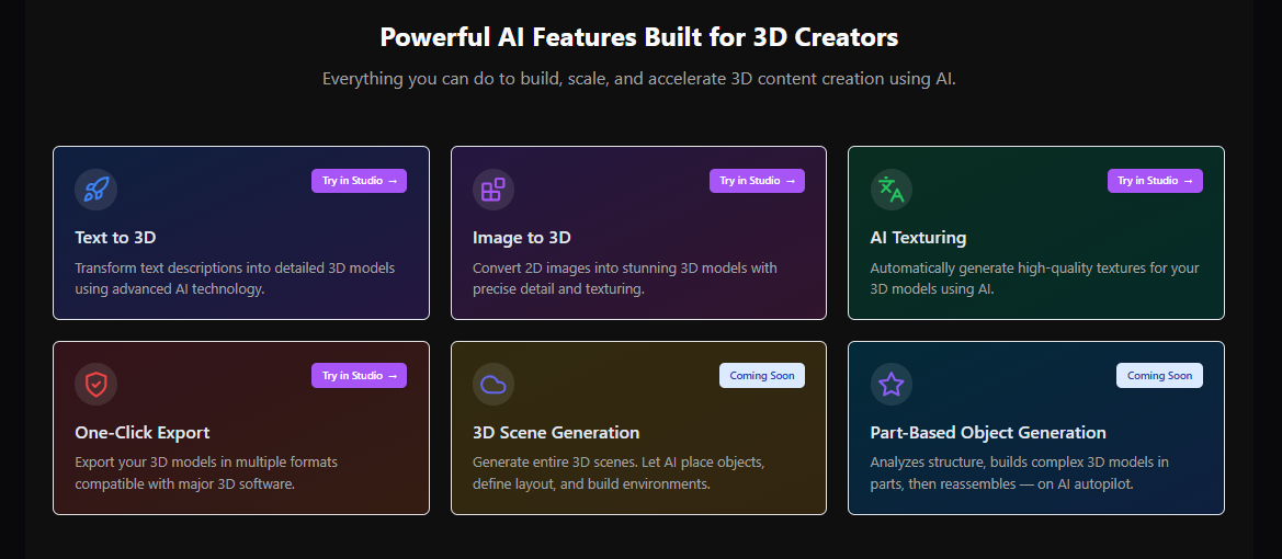 - Access to text-to-3D and image-to-3D features