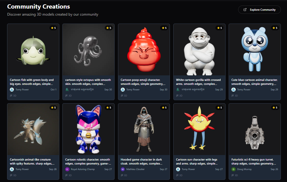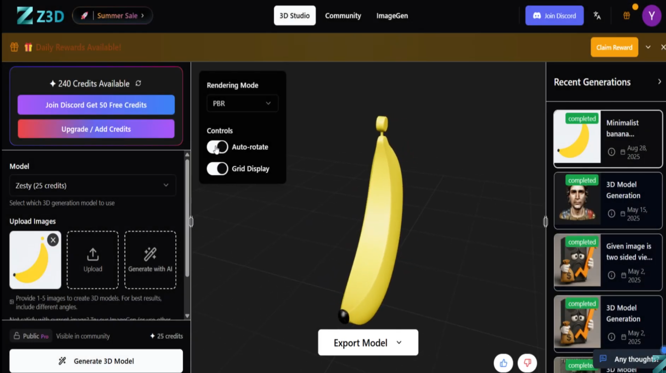 - Includes 1000 credits/month (40 basic 3D generations)