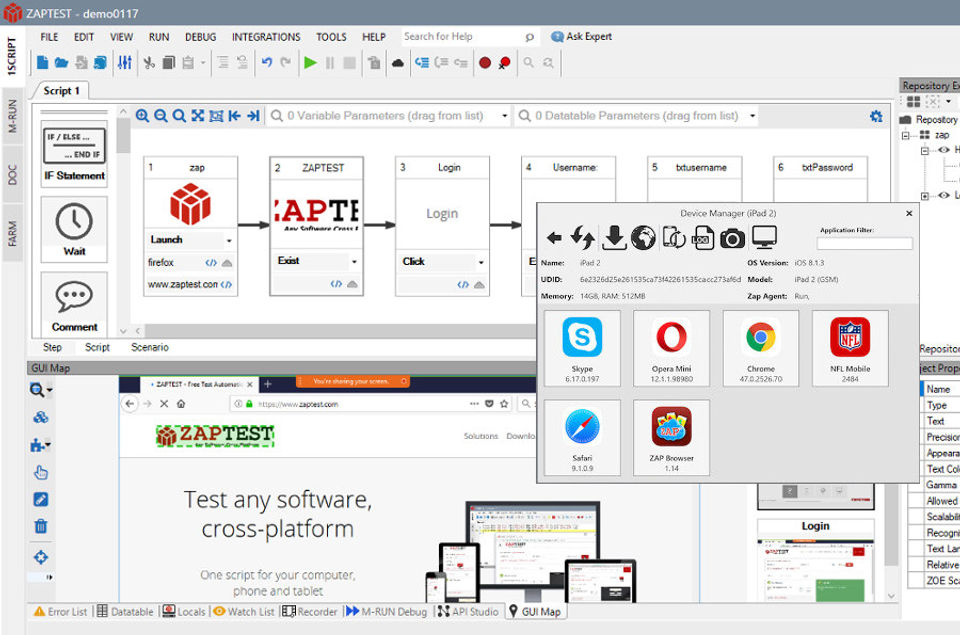 ZAPTEST is the Automated Testing Software used for the below functionalities.