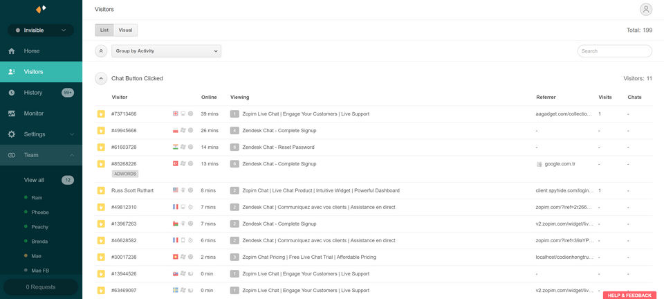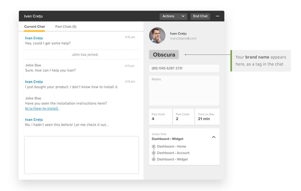 Zendesk Remote is the Live Chat Software used for the below functionalities.