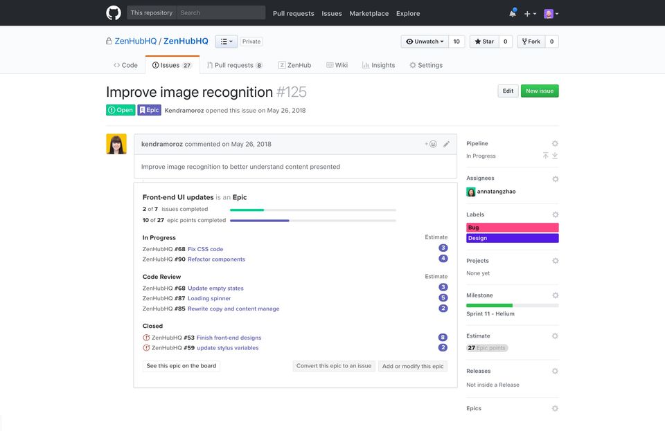 ZenHub is the Project Management Software With Slack Integration used for the below functionalities.