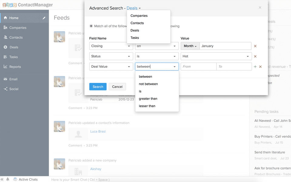 My contacts were spread out, zoho, it helps to unify the contacts in a smart way.