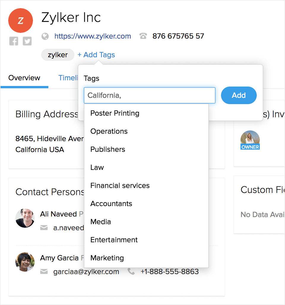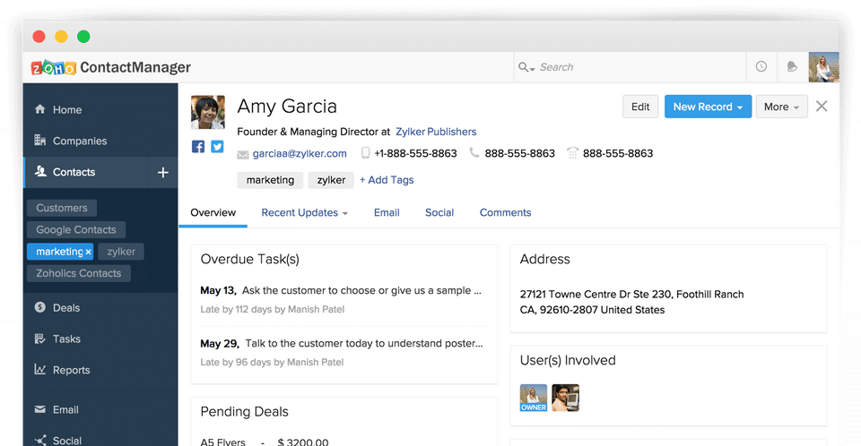 Zoho ContactManager is the Contact Management Software used for the below functionalities.