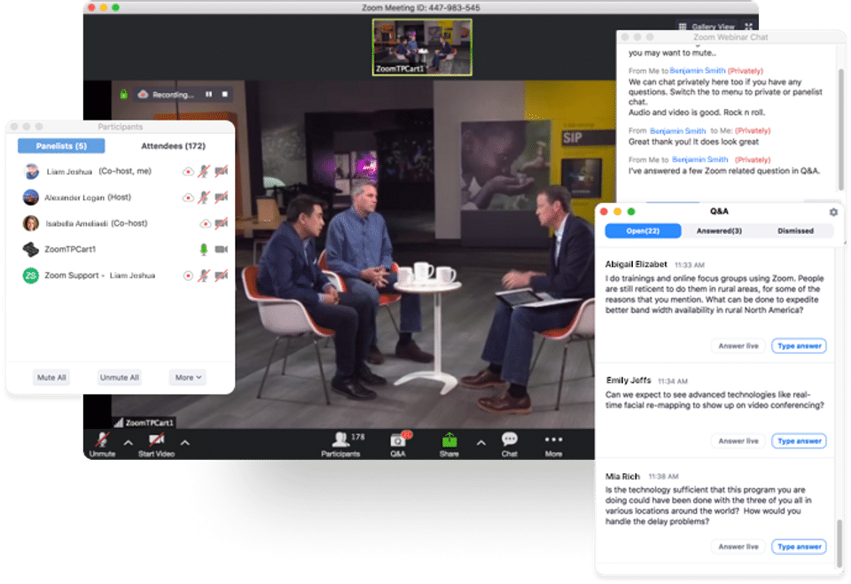 Zoom Video Webinar is the Webinar Software used for the below functionalities.