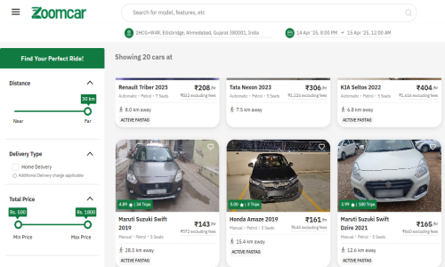 Zoomcar is the Car Rental Software used for the below functionalities.