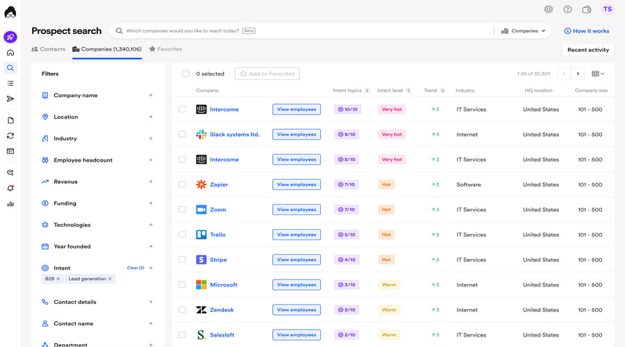 - Intent data- Find the prospects actively seeking solutions, which makes contact even smarter and more timely.
