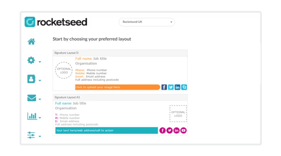 Rocketseed Ensuring every email reflects your brand consistently. It doesn't just create signatures it creates branded templates and dynamic content matching your company's identity. This email signature software makes sure every email appears neat, professional and no matter who sends it from your company.