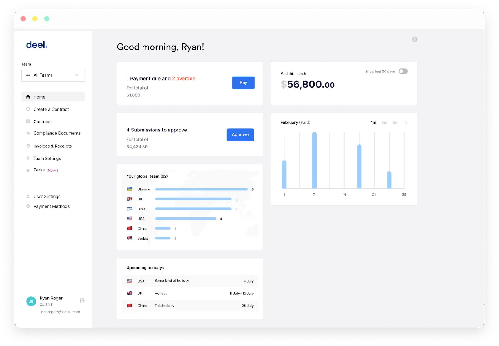 Deel offers end-to-end EOR Services for hiring full-time employees or contractors globally. It’s trusted by startups and enterprises for its legal coverage, payroll, and benefits infrastructure. Ideal for companies needing fast onboarding and a seamless experience with legal peace of mind.
