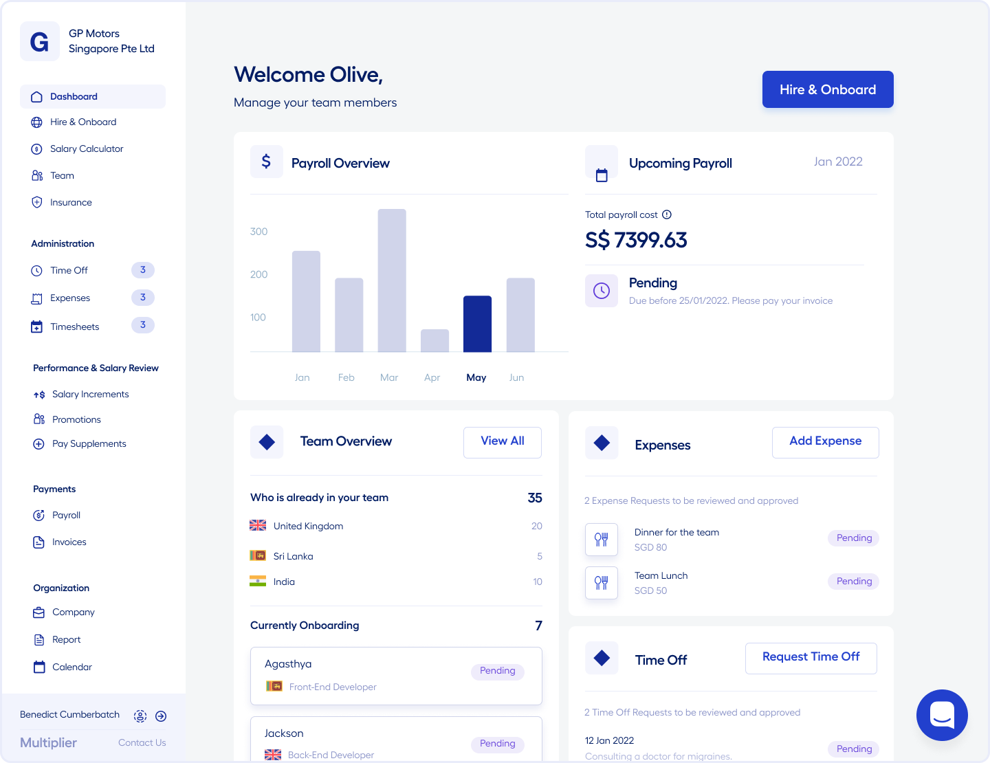 Multiplier is an emerging EOR Platform that enables global hiring with simplified compliance and payroll. It supports employee benefits and streamlines contract management. Best suited for SMBs and startups wanting quick, compliant onboarding of international staff.