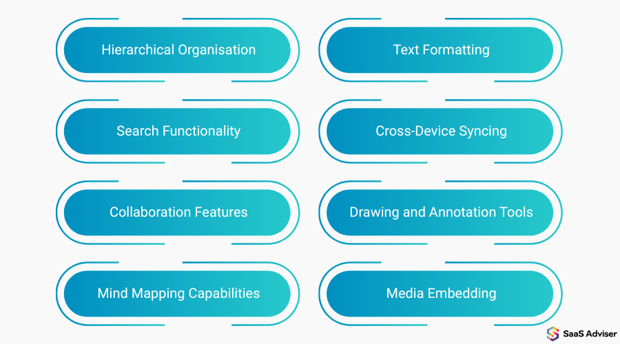 Note-Taking Software has much more than typing. It offers superior tools to arrange, distribute, and regulate information, both personal and professional, in its use. The following are the most important features discussed below: